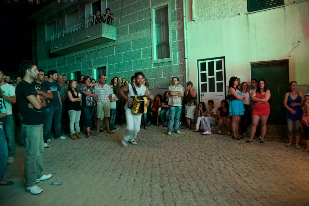 Tinham-me avisado para não entrar com o carro para dentro da aldeia, pois a festa impediria a passagem. Mesmo assim, não estava preparado para ver um enorme camião atravessado a meio do largo de Pousadas, numa manobra aparentemente impossível. Quando mais tarde perguntei ao grupo como é que tinham entrado com o camião no largo, limitaram-se a dizer “é a prática, já actuámos em sítios mais difíceis”.