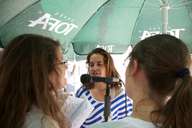 Em frente ao palco, a festa é dos familiares dos músicos. Dois pais transbordando alegria, de mini na mão, juntam-se ao coro das raparigas. Mais tarde, é a vez de duas mães.