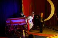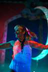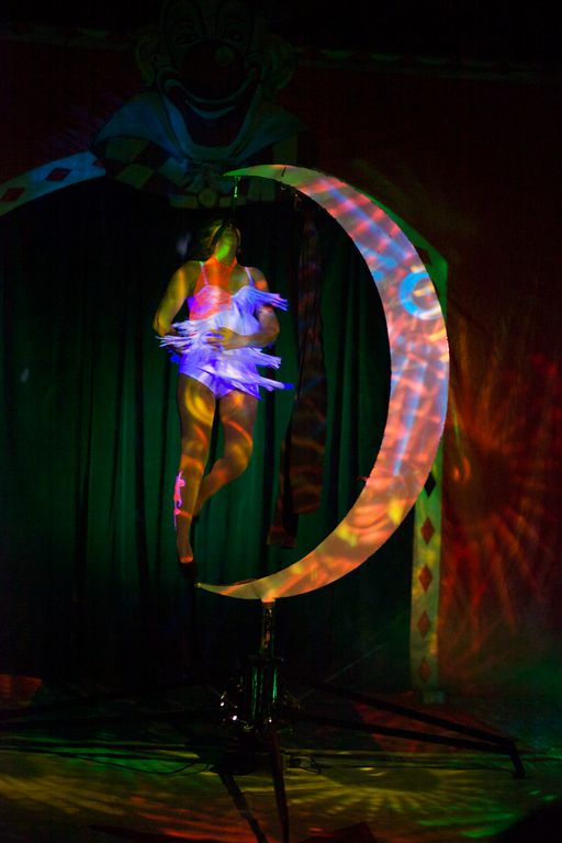 - Uma acrobata interage com uma Lua, com iluminação LASER e foco de luz (Sandra, com assistência da Jessica).