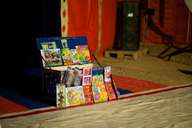 Ao intervalo, tentam vender uma espécie de orelhas luminosas. Um bar dentro da tenda vende algodão doce, pipocas e algumas bebidas.