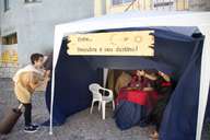 Encontrei um pequeno grupo, três mulheres e 7 crianças, em trajes coloridos da época, à espera dos “peregrinos”. E eu era o primeiro peregrino a chegar. A mulher mais velha, vestida de cigana exuberante, desafiou-me, em espanhol, a ler a sina na palma da mão, e levou-me para dentro da tenda onde estavam as duas “chicas” que, felizmente, falaram em Português. Soube depois que a “cigana espanhola” era Elisabete Gueirão, professora de Espanhol.