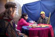 A “chica” lá inventou umas balelas sobre as linhas da minha mão, que enunciou de forma convincente. No fim, deu-me um “recuerdo”, uma tira de papel com os nomes das videntes, Yasmine e Jaciara.