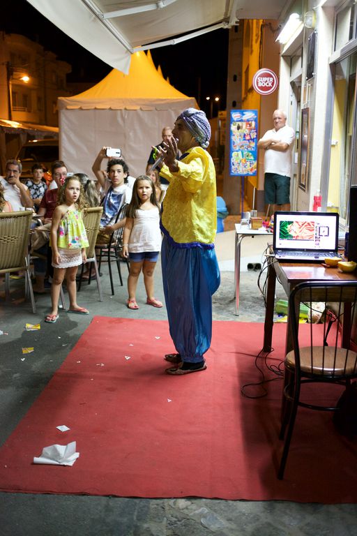 O espectáculo de magia começou com truques simples, mas depressa começou a exibir requintes de espectáculo de rua.