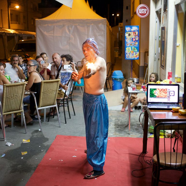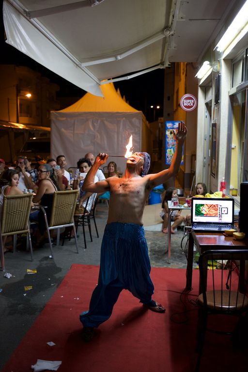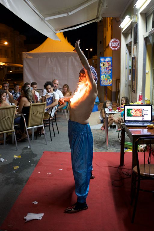 Fui ao Celeiro apenas com a lente de 40mm para assistir à actuação do mágico e fakir Nandy Fery (nome artístico de Guilherme Fernando Conceição). Tirei algumas fotografias gerais no início, mas descobri que não conseguia aproximar-me mais sem perturbar o resto dos espectadores. Assim, sentei-me para simplesmente assistir ao resto da actuação.