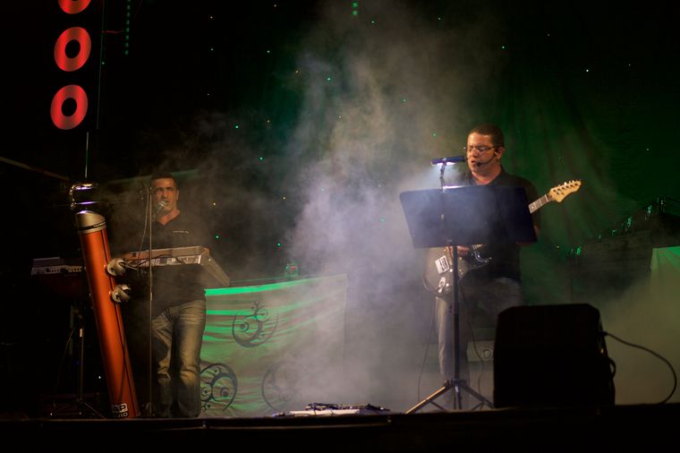Em vez disso, encontro um baile “a sério”. Os irmãos estão a actuar num camião-palco alugado, com dois técnicos a cuidar do som e da luz. O palco parece estranhamente vazio, com muito espaço para os dois. Mas eles estão entusiasmados, tocam com gosto, e tentam falar para o público. Atrás do palco, a porta de entrada é guardada por um palmo de urso de peluche.