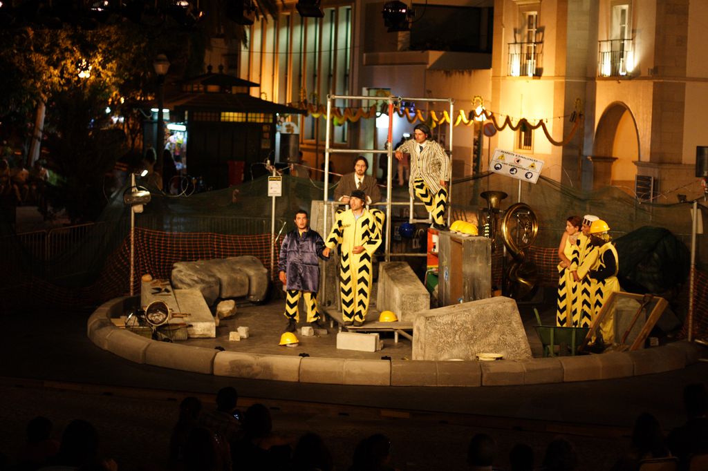 Uma peça muito pertinente em ano de eleições, parodiando os compadrios da pequena política e as rotundas que crescem como cogumelos.