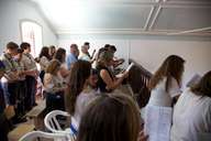 Em frente à igreja há um pequeno palco elevado para os rapazes tocadores, enquanto as raparigas cantam no chão, debaixo de dois enormes chapéus de sol (que tapam os rapazes). Além do Moisés, são cinco rapazes (que tocam e cantam) mais sete raparigas (que apenas cantam em coro).