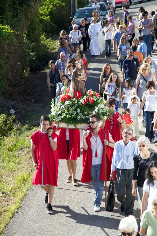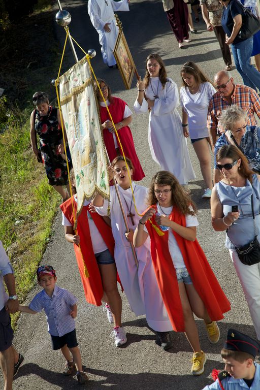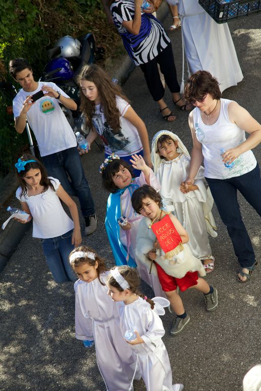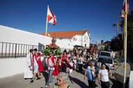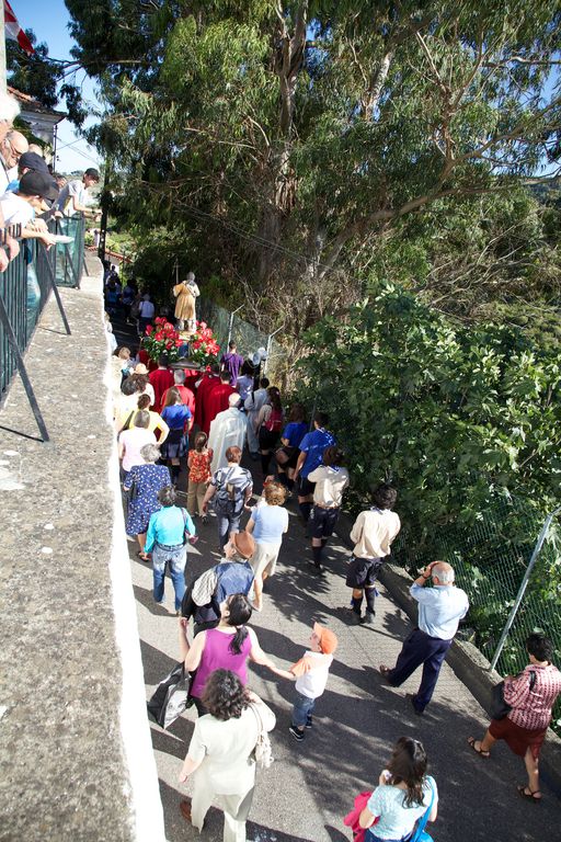 Às seis começa a procissão. O meu sobrinho abre a procissão com mais dois jovens. Segue-se a banda, dois andores, e a população. Há também crianças mascaradas de pastores e anjinhos, com fatos de branco brilhante. A procissão desce em direcção a uma ponta da aldeia, ocupa a estrada nacional 248-3 (cuidadosamente cortada pelos militares da GNR), e volta a entrar na aldeia, subindo até à igreja.