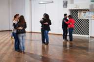 Antes do workshop, converso um pouco com a Solange. Quer o Arménio quer a Solange têm alguns anos de experiência de dança, mas só há três meses é que se juntaram como professores e como par de dança. Dão aulas semanais em Vialonga, mas gostariam de dar mais aulas, talvez até no CPCD.