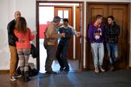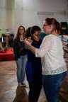 O workshop vai atraindo a atenção dos mirones, que se vão acumulando ao longo das paredes, ou à volta das mesas. Serão talvez uns vinte. Dois homens alegres ensaiam passos de dança no canto do salão. Incito-os a juntarem-se ao grupo, mas recusam. Demoro algum tempo até os conseguir fotografar, distraídos com a sua própria dança. Dançarão, horas depois, com várias das alunas.