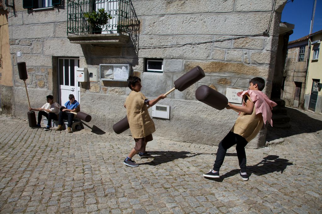 A presença constante dos telemóveis quebra a magia dos trajes medievais. Assim como o berrante pacote de sumo do Continente na Tasca do Ti Joaquim.