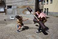 Fiquei por ali, enquanto os miúdos se divertiam a lutar com paus almofadados. Outro miúdo tinha a tarefa de ler um poema a duas donzelas, que o escutavam embevecidas. A professora estragava o quadro ao insistir na dicção correcta (não são môlhos, são mólhos!).