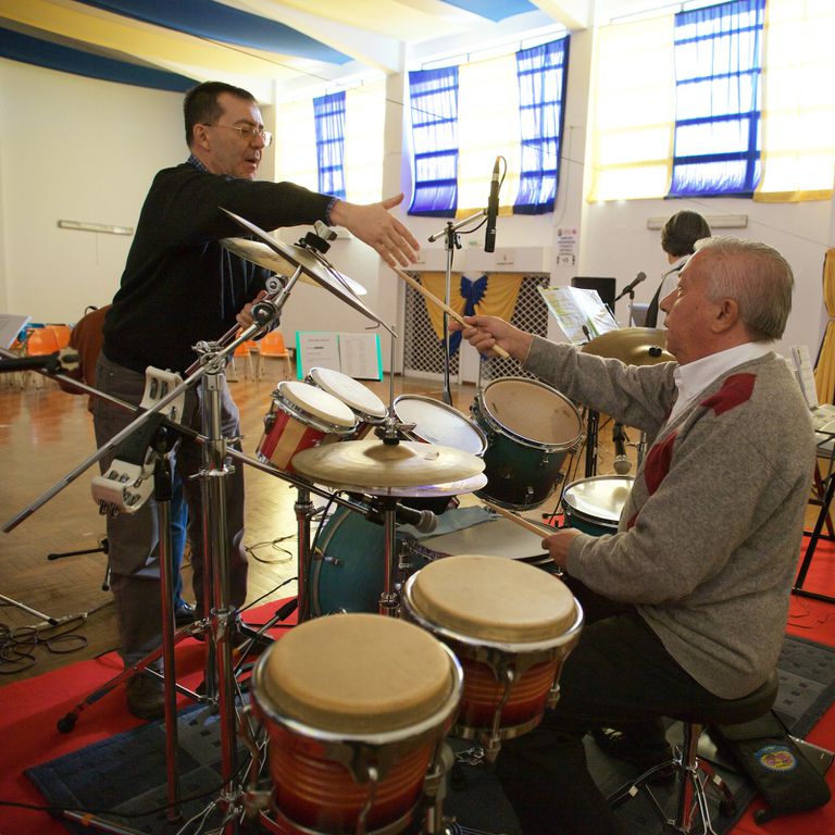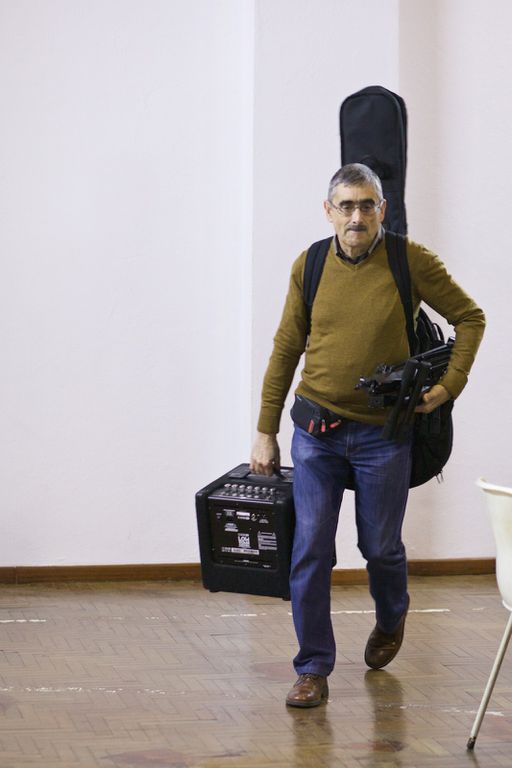 Como é habitual com este grupo, o espectáculo começou com o transporte dos múltiplos instrumentos, afinação, ligação à mesa misturadora, e testes de som. Com 13 músicos, é um processo que demora o seu tempo. Aproveitei para me esgueirar entre os músicos, conseguindo quer retratos quer fotografias em situações naturais.