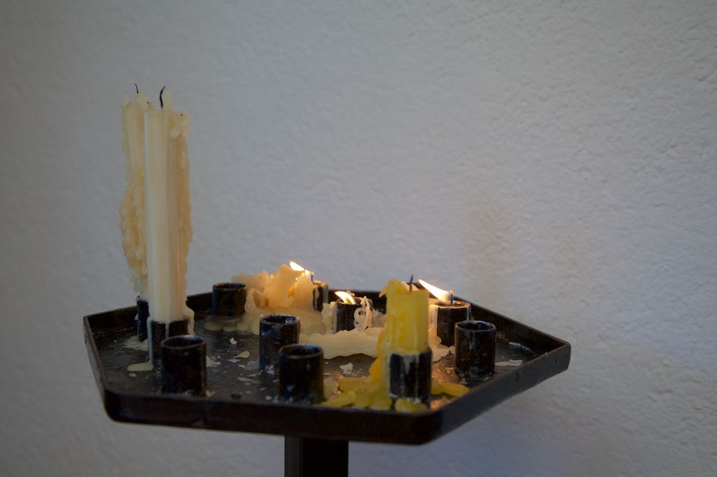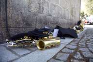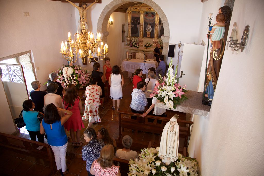 Desta vez descobri uma abertura na porta lateral da capela que me permitiu fotografar o ambiente no interior, incluindo a banda apinhada no pequeno balcão.