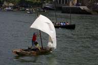 Os pequenos barcos de vela trapezoidal baralhavam-se particularmente na manobra de bolinar, com a vela a sacudir aflitivamente até a tripulação conseguir esticar os cabos de forma a apanhar de novo o vento na vela.