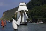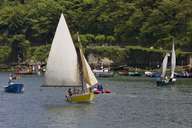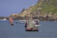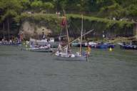 Voltando a favor do vento, espantou-me particularmente um pequeno barco com uma enorme quantidade de velas enfunadas. Creio ser o barco para duas pessoas "Deux-Frères", construído em 1911.