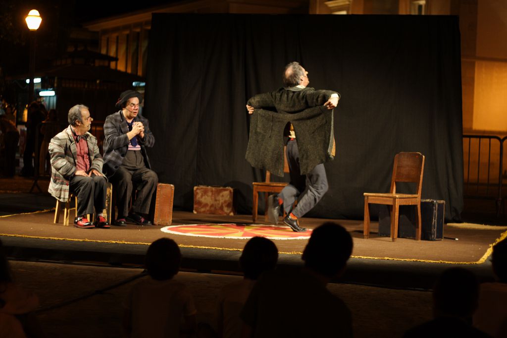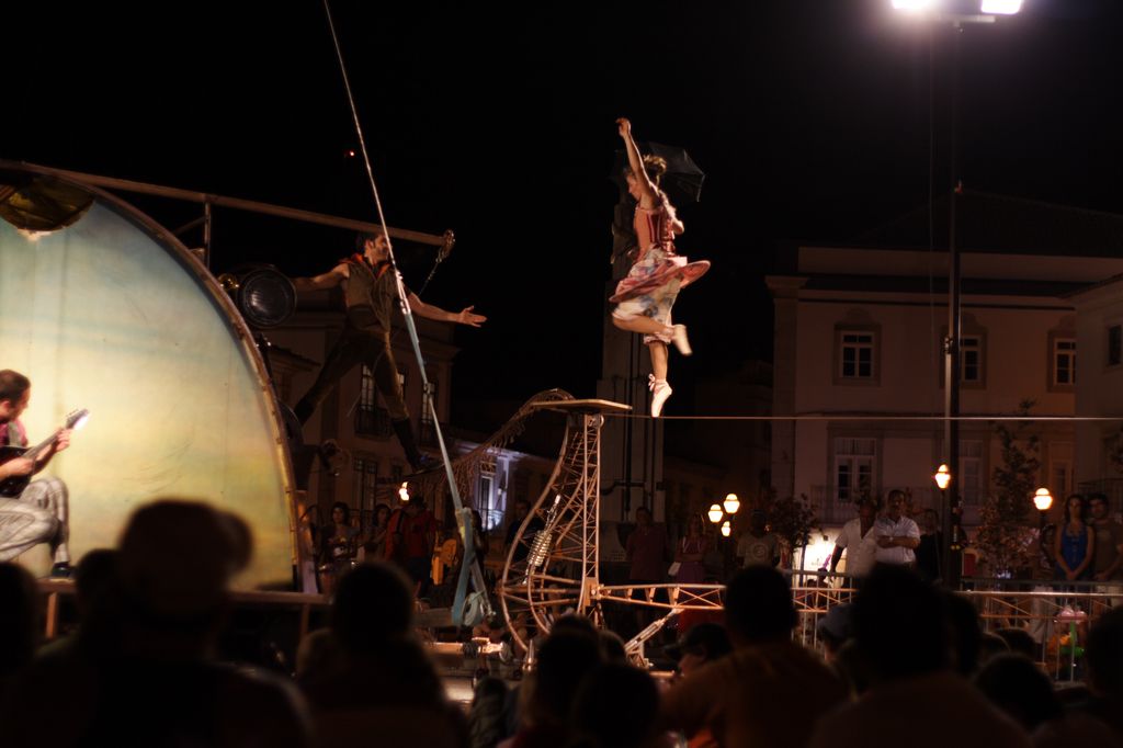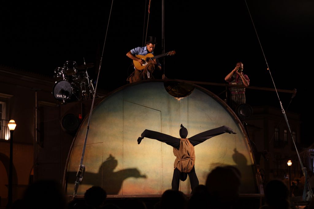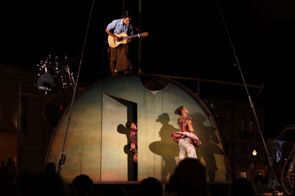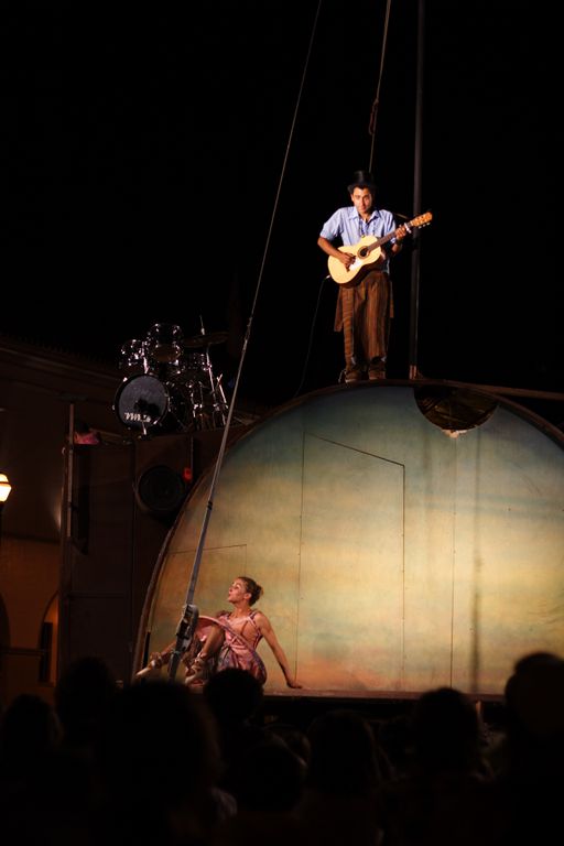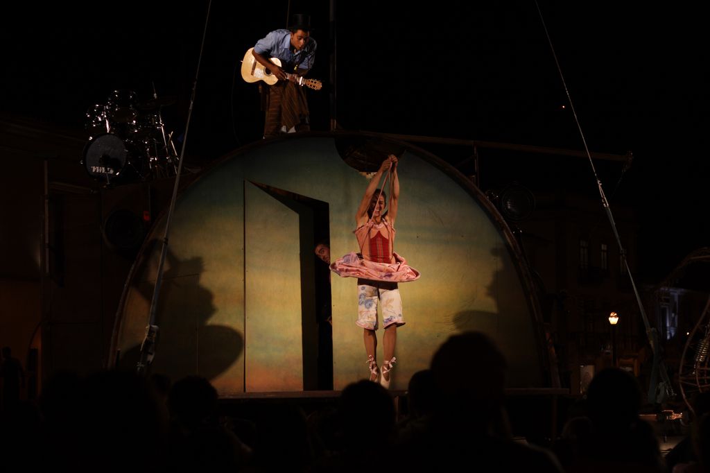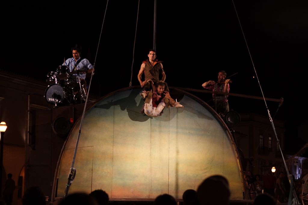Equilibrismo, música e teatro de rua num cenário portátil mas elaborado. O espectáculo combinou habilidade com surpresa. No final, houve convívio espontâneo com o público.