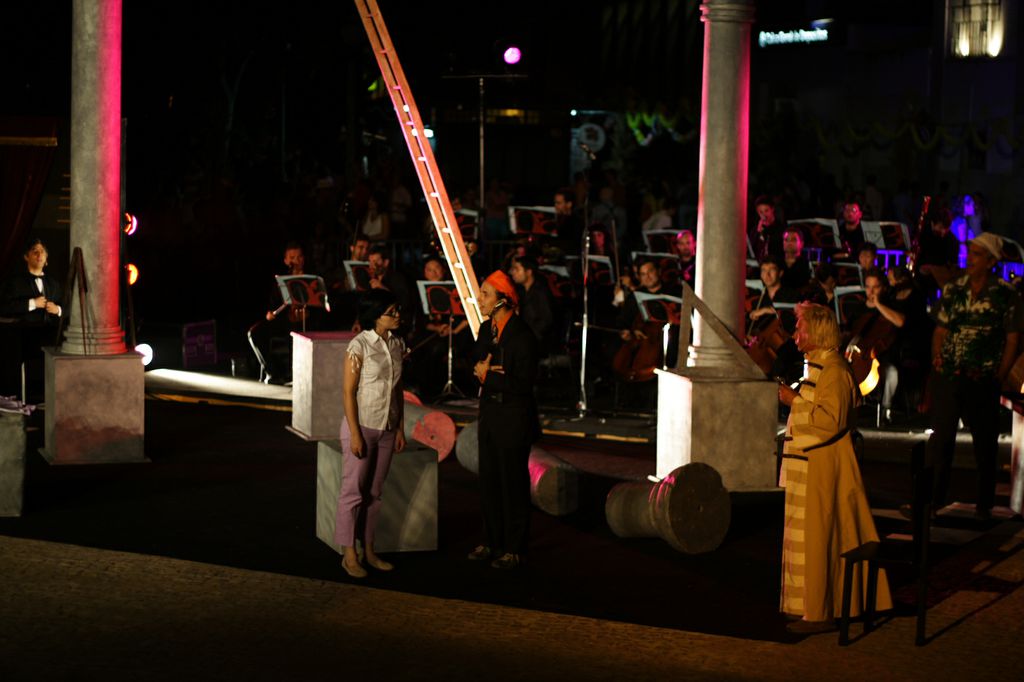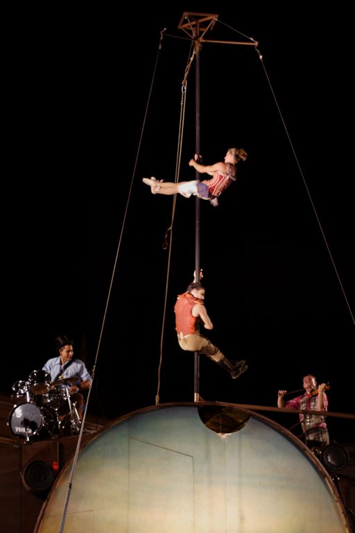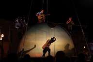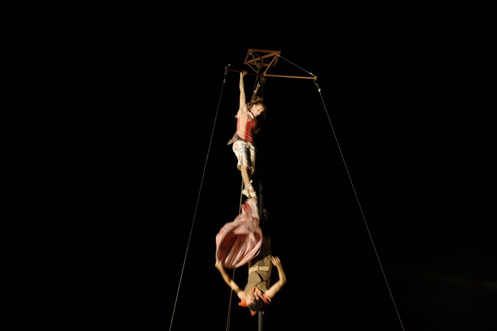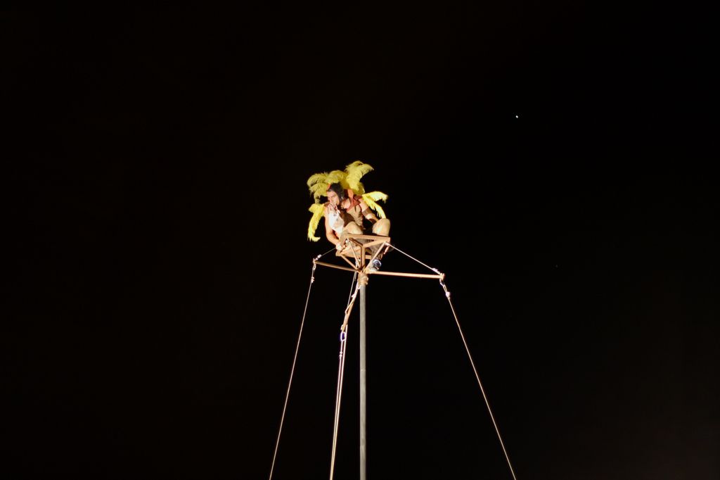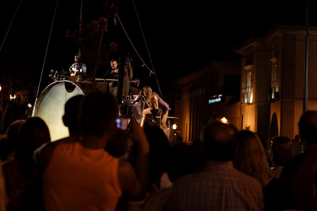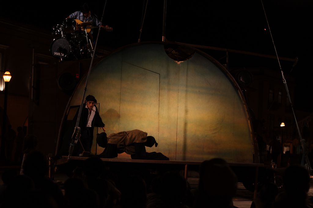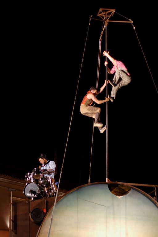 Equilibrismo, música e teatro de rua num cenário portátil mas elaborado. O espectáculo combinou habilidade com surpresa. No final, houve convívio espontâneo com o público.