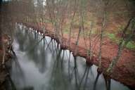 Estava em cima da ponte romana quando começou a chover com maior frequência, fazendo-me usar a toalha portátil e o saco de plástico que tinha preparado para os Açores (onde não foram precisos). Voltei a ser surpreendido pelo efeito do filtro ND3, que tornou as águas agitadas pela chuva num espelho de prata. O filtro acentua o vermelho das folhas nas margens, mas o efeito final ainda é agradável.