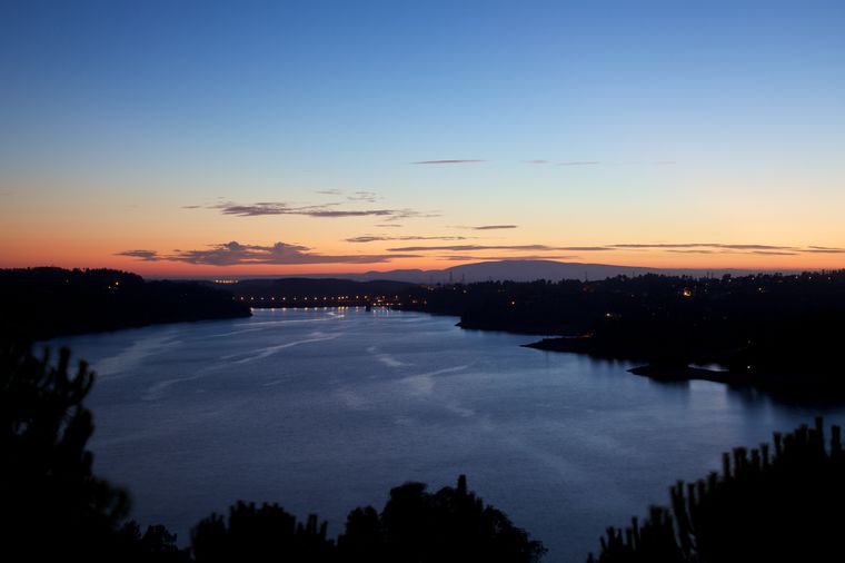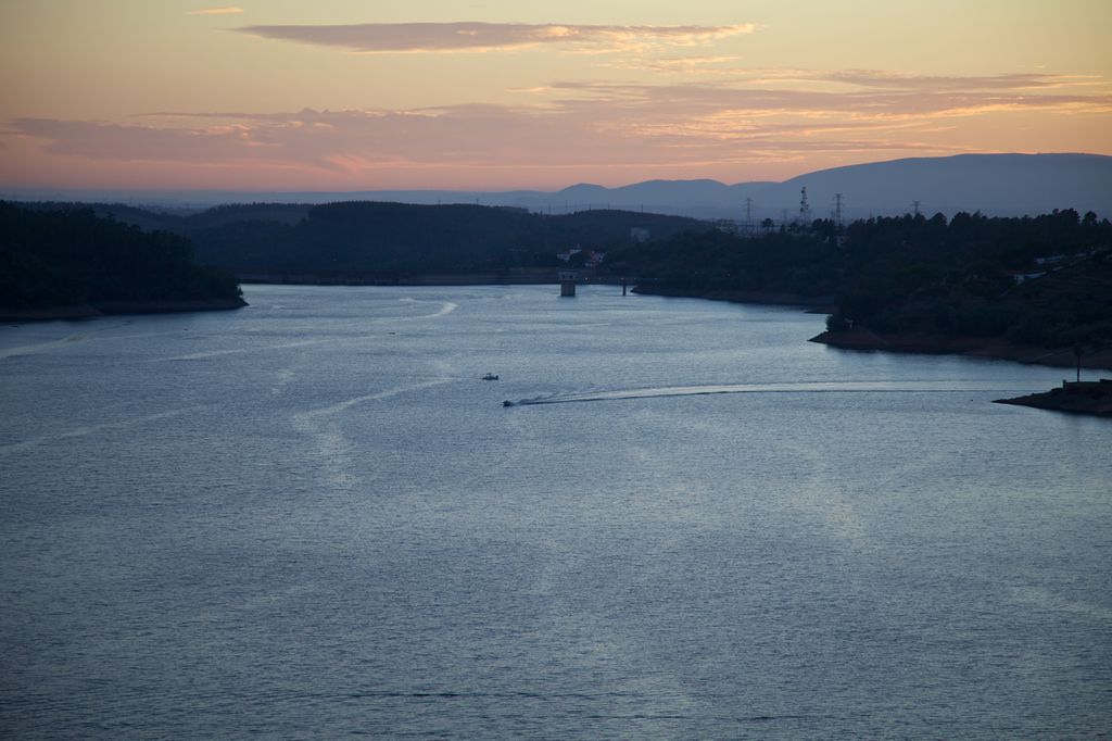 Perto do pôr-do-sol, as encostas da margem direita do Zêzere ficaram na sombra, criando um enorme contraste com o céu. Como não tinha levado filtros graduados, as fotografias do pôr-do-sol ficaram pouco interessantes.