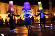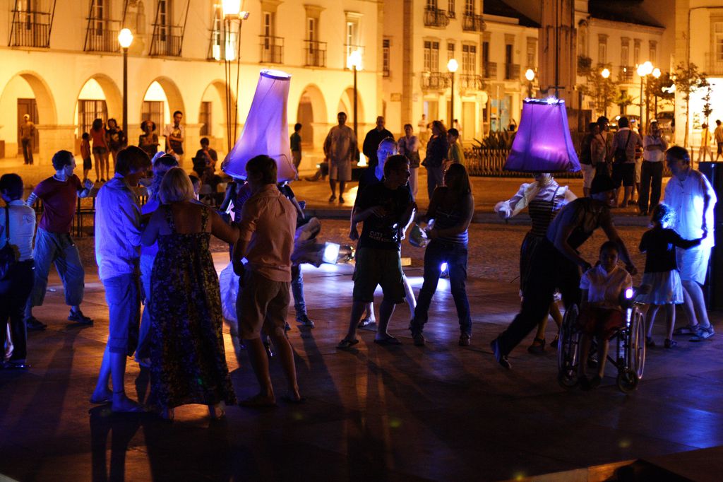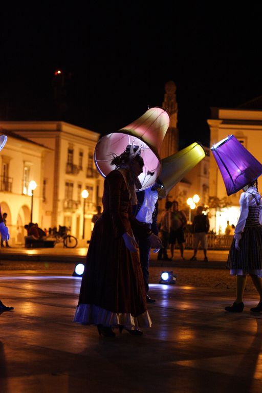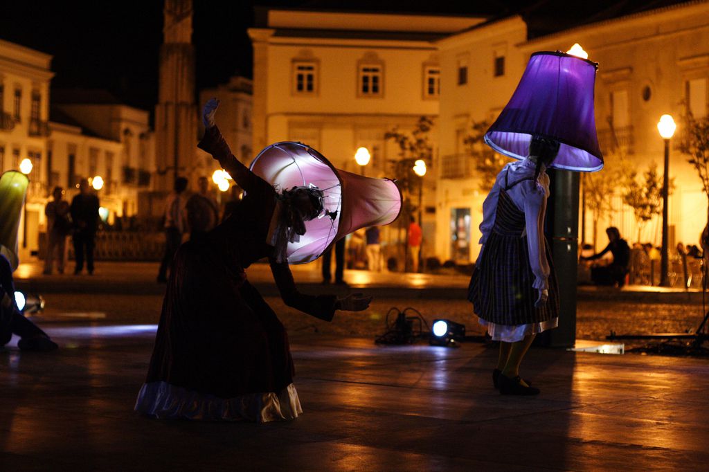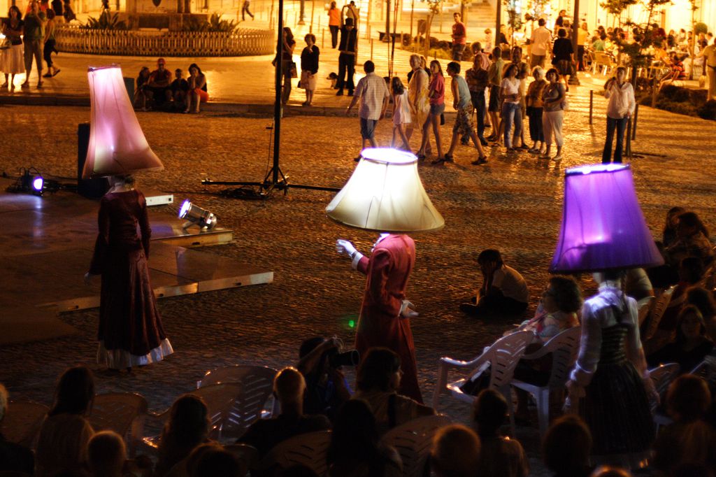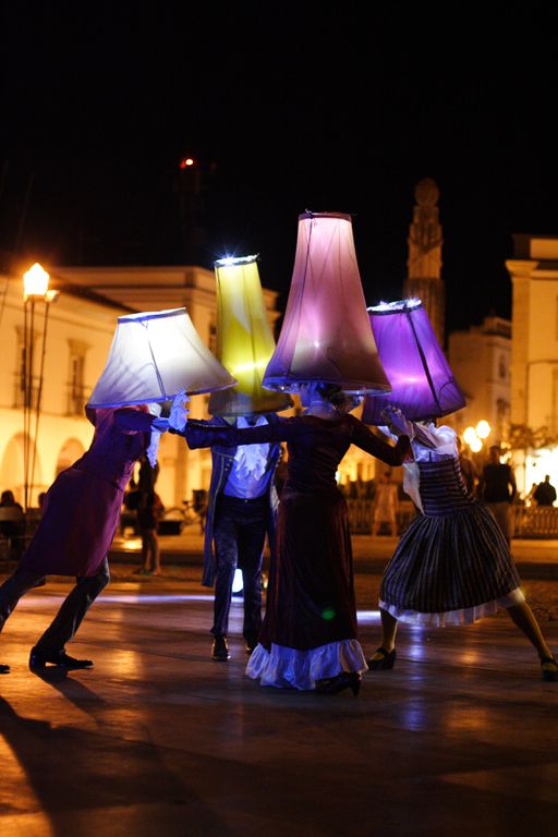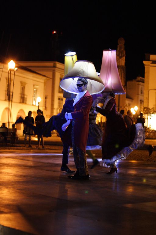 Primeiro os candeeiros criam surpresa ao deambular entre o público. Depois os candeeiros dançam, criando múltiplos quadros. No fim os candeeiros deixam o público a dançar sozinho.