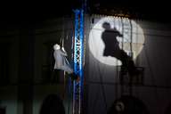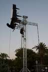 No centro da Praça da República em Tavira, está uma enorme estrutura de três pernas, com uns dez metros de altura, onde estão pendurados vários carrinhos de linha gigantes. Foi o primeiro contacto com o festival Cenas na Rua, parte do programa Verão em Tavira 2016.